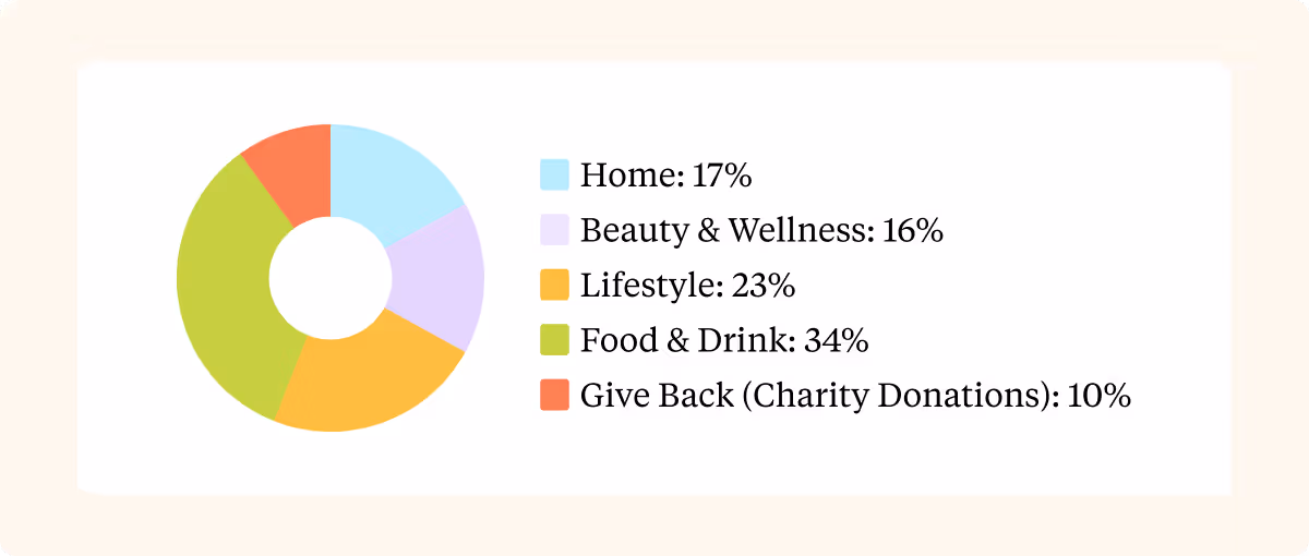 Människor valde oftare produkter från kategorin Lifestyle (24 %) än Hem (17 %) eller Skönhet + Hälsa (16 %).